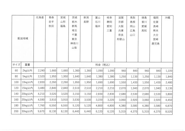 ・1梱包に入る重さは常温便は30㎏まで、冷蔵・冷凍便は15㎏までとなります。